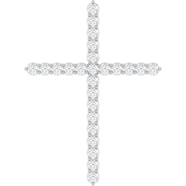 R42359 / Necklace / Set / 14K White / Round / Natural Diamond / 37.23 X 27.62 Mm / 2.2Mm :: 1 Ctw / I1, G-H / 16-18 In / Polished / 1 Ctw Natural Diamond Cross Necklace