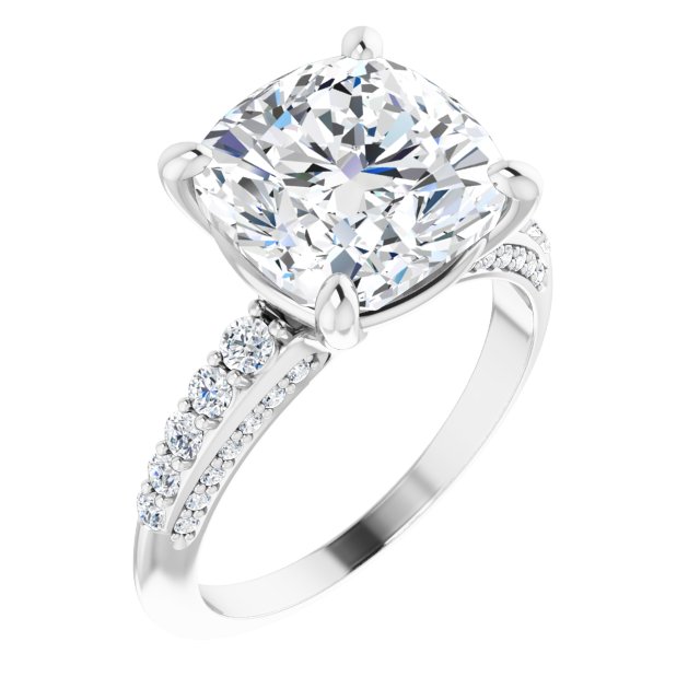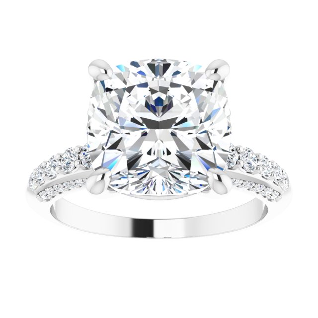 122219 / Engagement Ring / Unset / 18K White / Cushion / 10 X 10 Mm / Polished / Engagement Ring Mounting