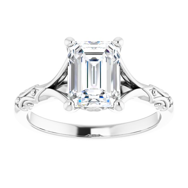124519 / Solitaire / Engagement Ring / Unset / 14K White / Emerald / 8 X 6 Mm / Polished / Engagement Ring Mounting