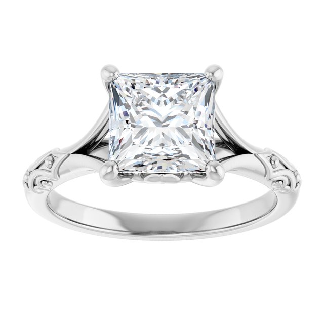 124519 / Solitaire / Engagement Ring / Unset / 14K White / Square / 7 X 7 Mm / Polished / Engagement Ring Mounting