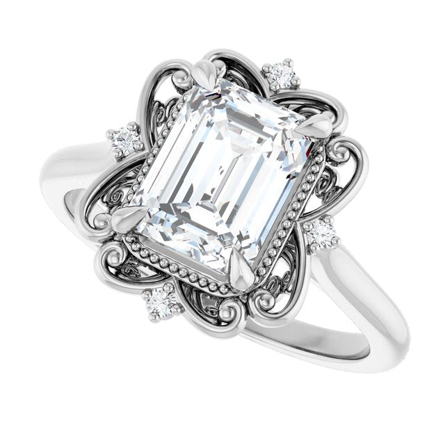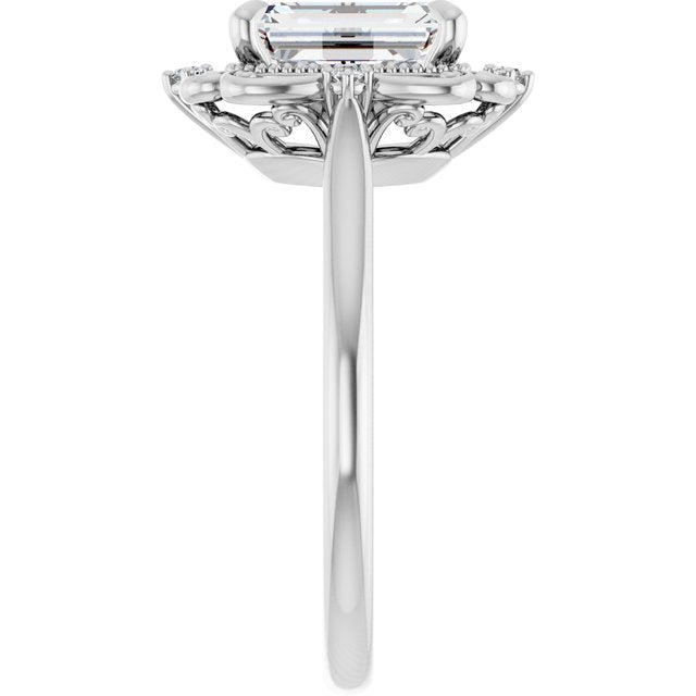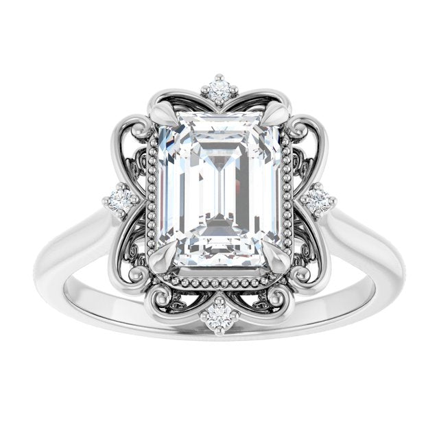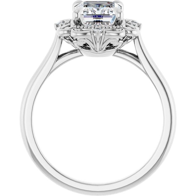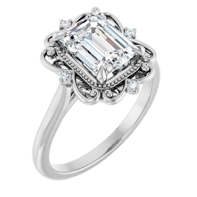 124061 / Engagement Ring / Unset / 14K White / Emerald / 8 X 6 Mm / Polished / Engagement Ring Mounting